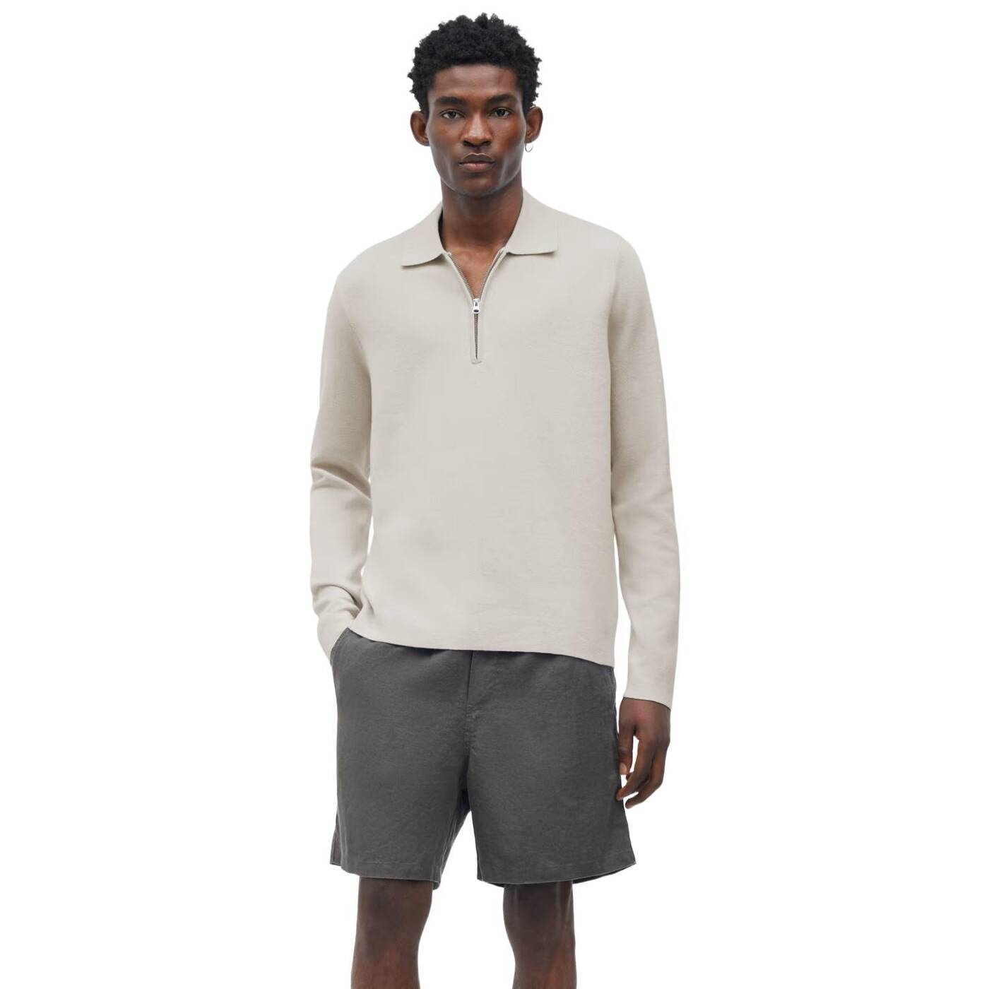Langärmeliger Polo-Sweater mit normaler Passform. Kurzer Reißverschluss auf der Vorderseite. Hauptmaterial aus einem Biobaumwoll-Mischgewebe.