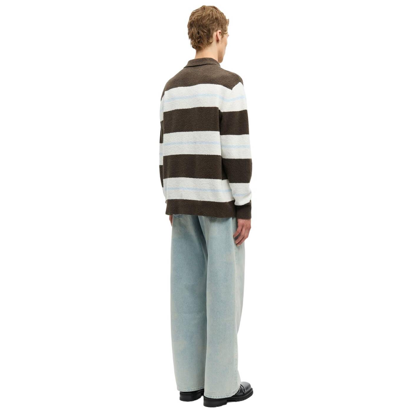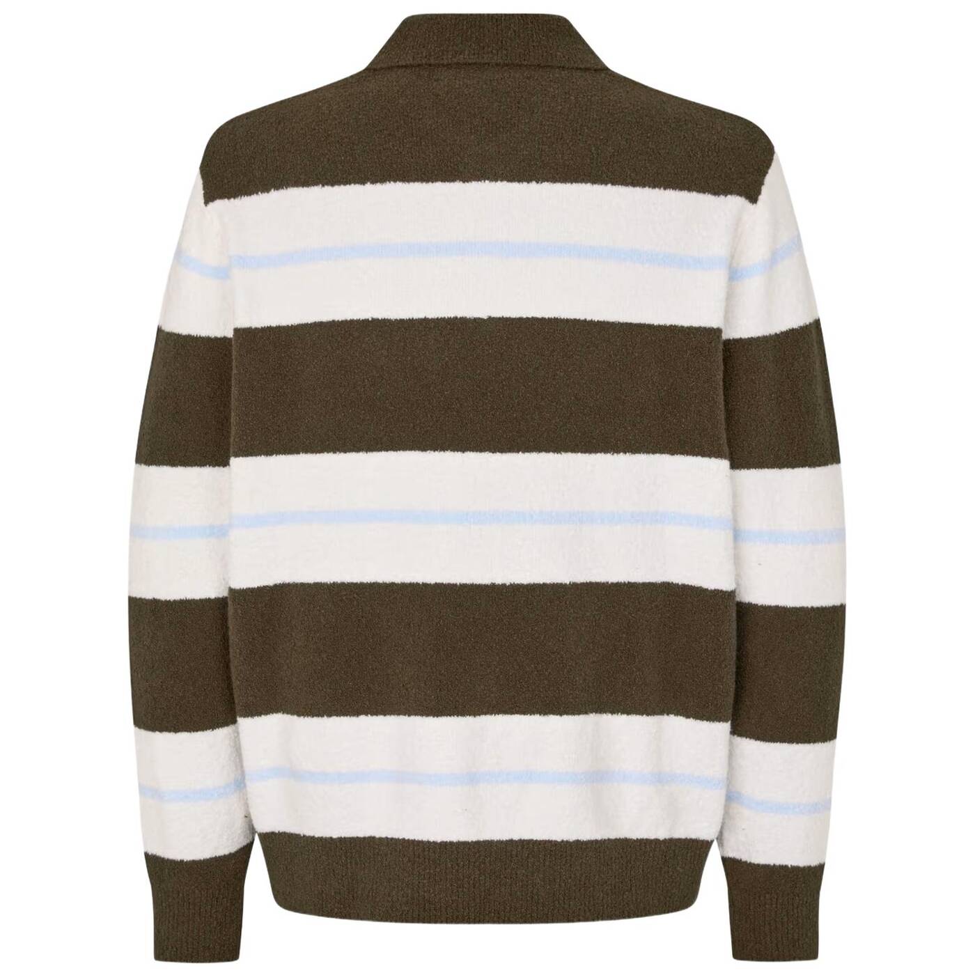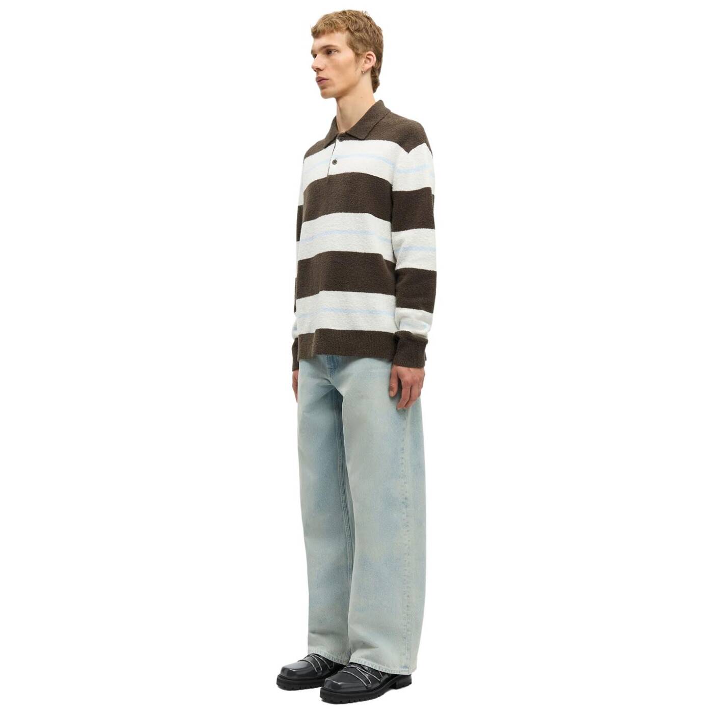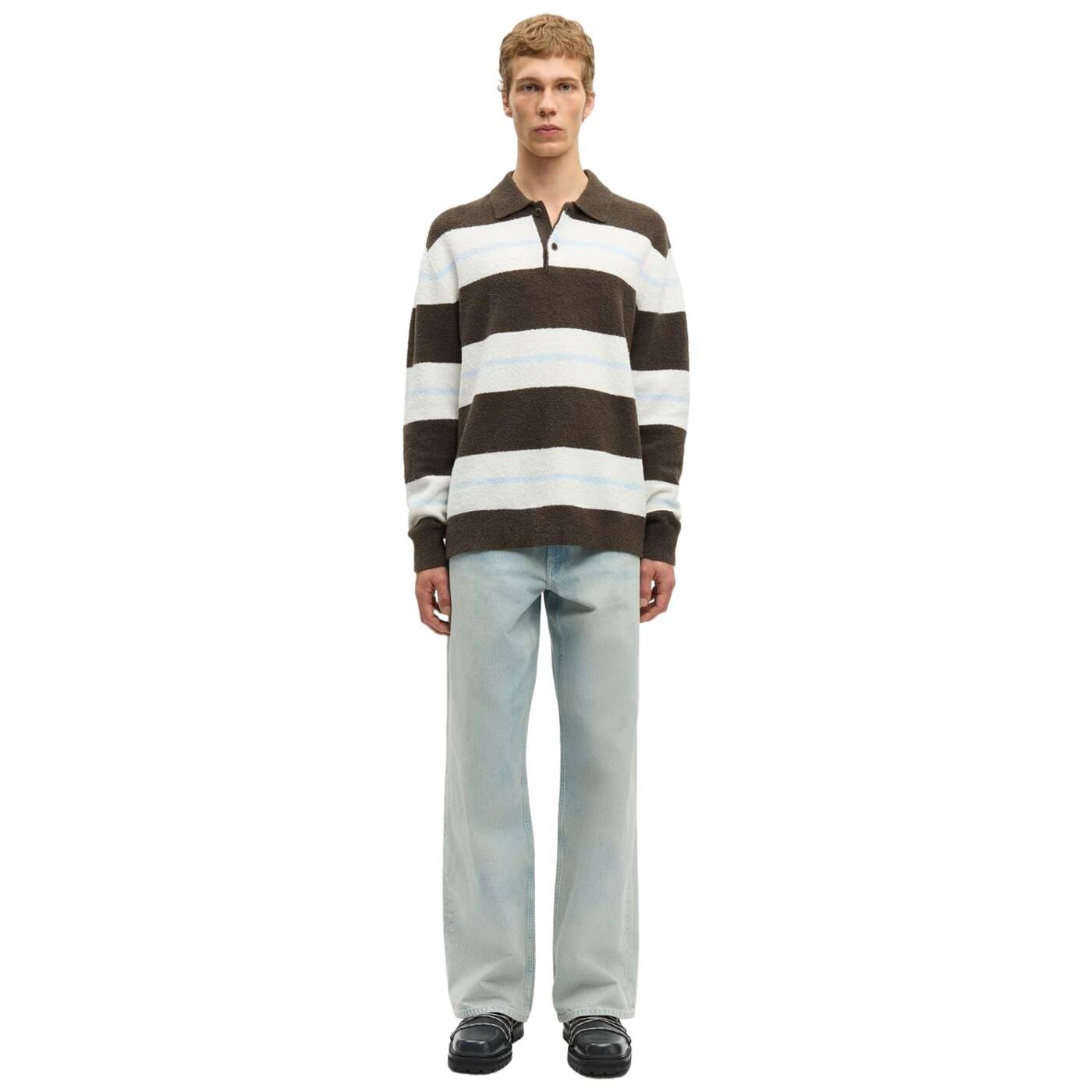 Polo-Sweater mit loser Passform. Kurzer Knopfverschluss auf der Vorderseite. Rippbündchen an Ärmeln und Saum. Milano-Strickkragen. Hauptmaterial aus elastischem Mischgewebe mit Biobaumwolle und recycelter Baumwolle.