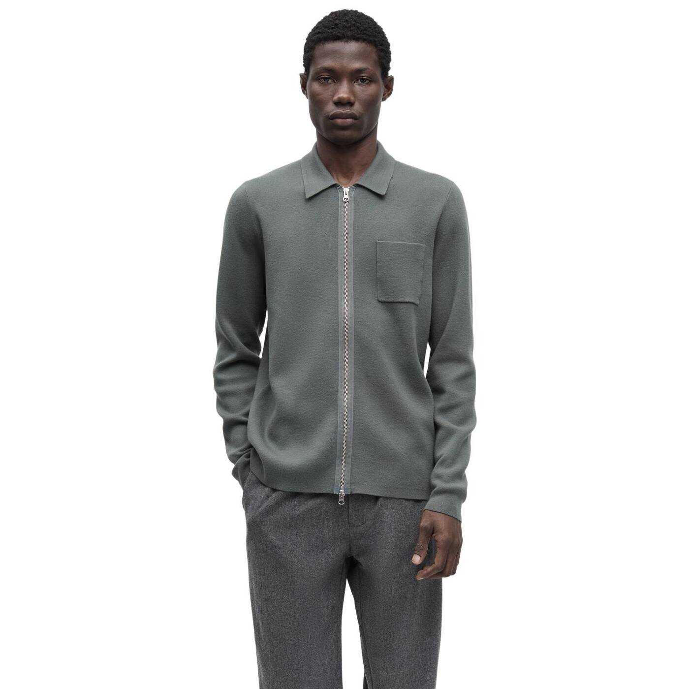 Zwei-Wege-Reißverschluss auf der Vorderseite. Aufgesetzte Tasche an der Brust. Gestrickt mit einer feinen Stärke.