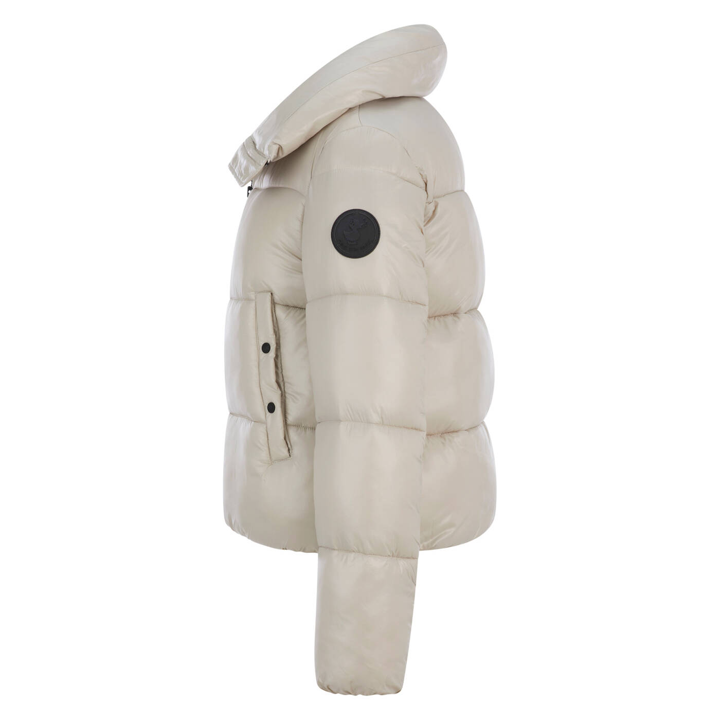 Die Steppjacke Isla aus lackiertem Nylon mit tierfreier Wattierung ist stilvoll und gemütlich. Sie ist mit einem warmen Trichterkragen und einem schwarzen Zwei-Wege-Reißverschluss ausgestattet. Weitere charakteristische Details sind die individuellen Reißverschluss-Schieber und das runde Gummilogo auf dem Ärmel.