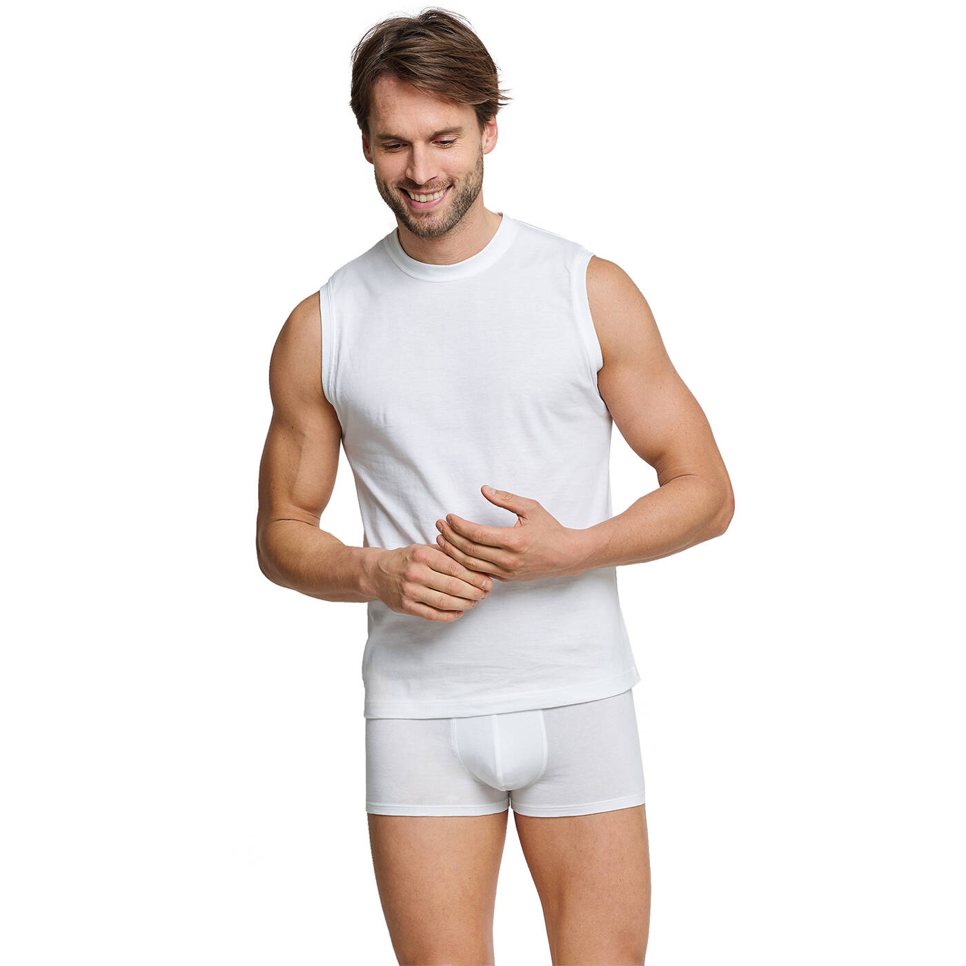 Weiches, formstabiles Material und ein bequemer Schnitt machen diese beiden, ärmellosen Herrenshirts zum unschlagbaren Wäsche-Doppelpack. Softer Single Jersey aus 100% supergekämmter Baumwolle gewährt dabei hohen Tragekomfort und lässt sich problemlos bei 60 Grad waschen sowie im Trockner trocknen. Genau das Richtige für Herren, die maskuline, unkomplizierte Basics in bester SCHIESSER-Qualität schätzen!