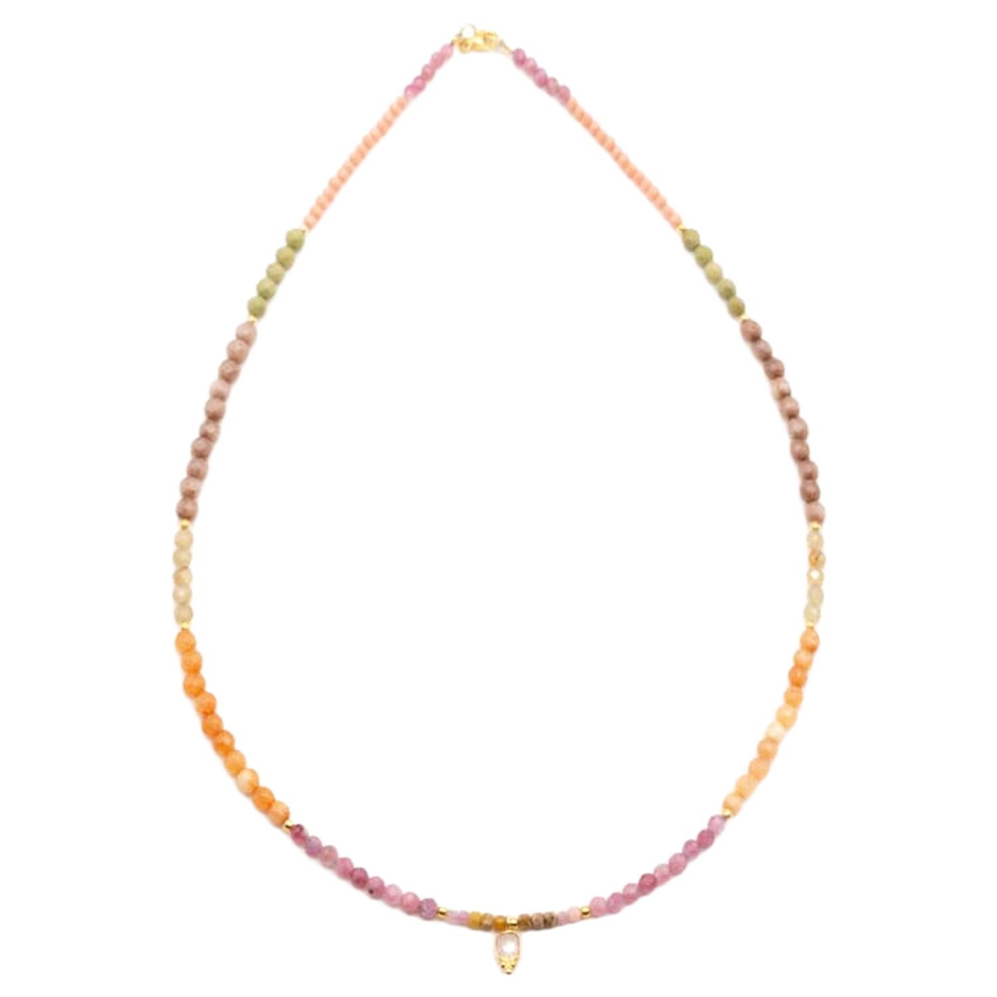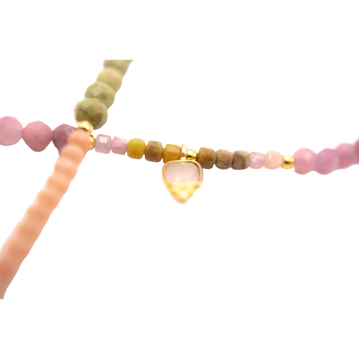 Kette kurz (ca. 45cm) aus vergoldetem Sterlingsilber mit Perlen aus Obsidian und Labradorit und Onyx-Anhänger