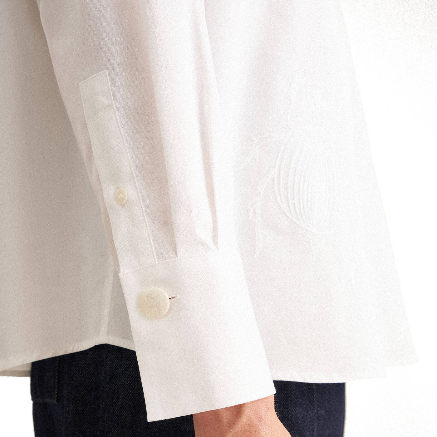 - Tonale Skarabäus-Stickerei auf der Seite