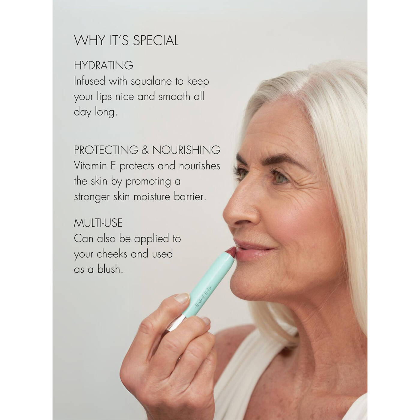 Le Lipstick ist ein ultraweicher Lippenstift mit einer butterweichen, balsamischen Formel, die den Lippen einen schönen Glanz verleiht und sie dank ihrer nährenden und feuchtigkeitsspendenden Formel aufpolstert. Die Farbe lässt sich leicht auftragen und hinterlässt ein himmlisch weiches Gefühl auf den Lippen. Die Formel ist sauber, natürlich und vegan.