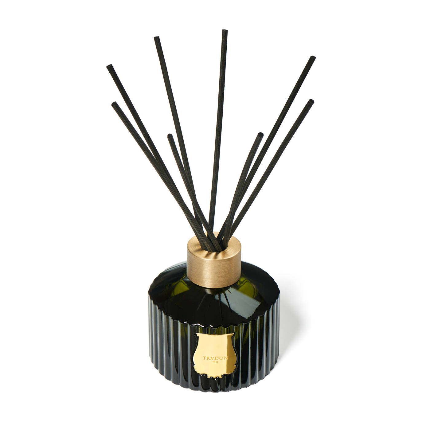 Der 350ml Corpus ist aus dem bekannten emblematischen Trudon-grünen Glas gearbeitet, mit einem goldenen Emblem verziert und ermöglicht eine 3 bis 4 monatige passive Diffusion.