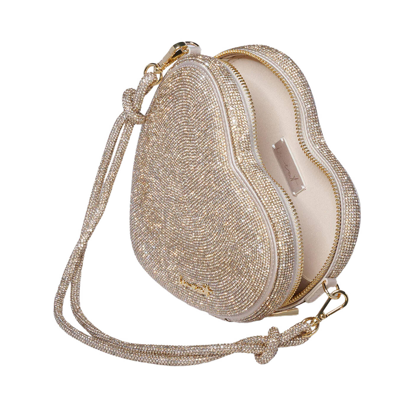 Material: Mit Kristallen verzierter Satin / veganes Leder