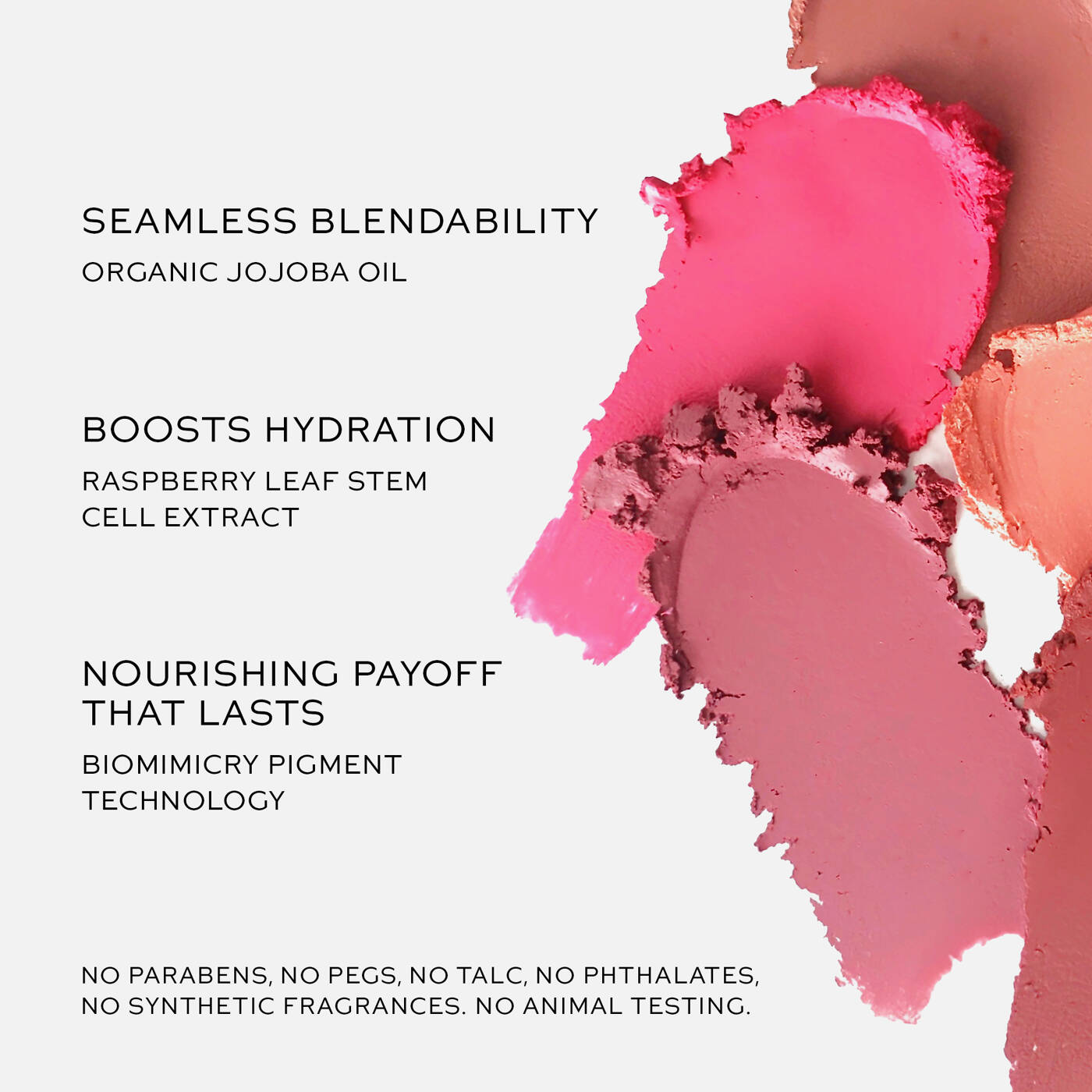 Die cremige Textur schenkt einen belebenden, natürlichen Farbeffekt, enthält hautberuhigende Inhaltsstoffe, die den Feuchtigkeitsgehalt der Haut ausgleichen, verschmilzt mit dem Teint und sorgt für eine aufbaubare Definition. Die sechs verschiedenen Farbtöne, können nach Lust und Laune kombiniert und individuell verwendet werden. Für einen monochromen Look auch auf die Lippen auftragen.