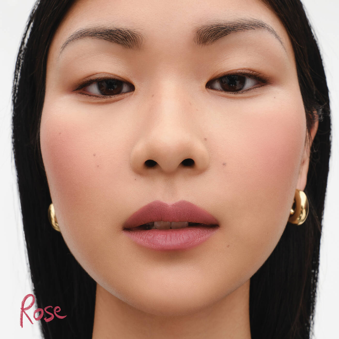 "„Ein feuchtigkeitsspendender, matter Lippenstift mit einem traumhaften, leichten Gefühl und lebendiger, klarer Pigmentierung - für Lippen, die sich so gut anfühlen, wie sie aussehen. Mit einer Mischung aus Peptiden, Vitamin C und E sowie der Hydro Suede Technology, einem volumengebenden, feuchtigkeitsspeichernden System, das matte Pigmente liefert, ohne auszutrocknen oder zu fetten, werden die Lippen aufgepolstert, genährt und geglättet.