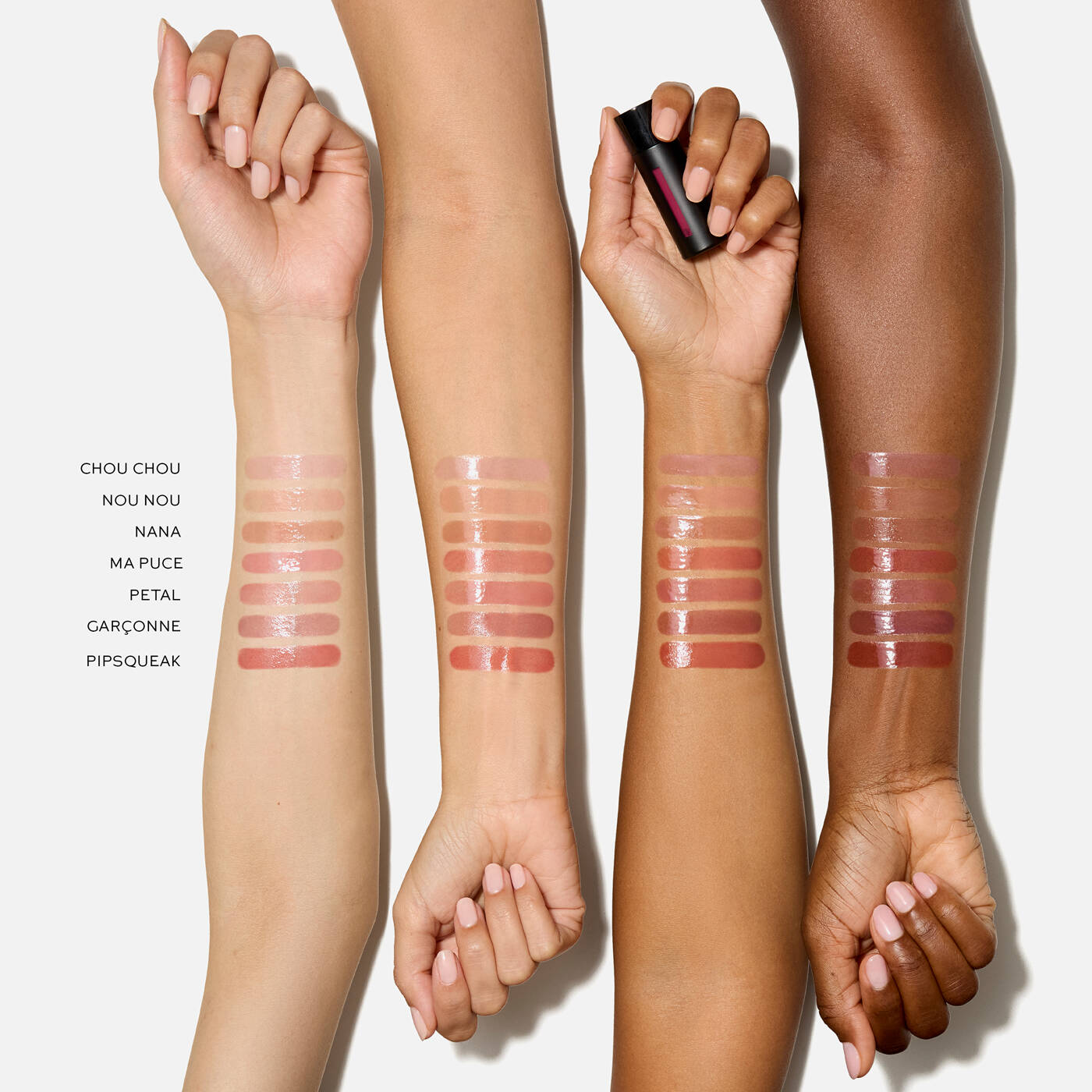 Garconne, Nana, Pipsqueak, Ma Puce, Nou Nou: DIISOSTEAROYL POLYGLYCERYL-3 DIMER DILINOLEATE, RICINUS COMMUNIS SEED OIL / RICINUS COMMUNIS (CASTOR) SEED OIL, OCTYLDODECANOL, PRUNUS AMYGDALUS DULCIS OIL / PRUNUS AMYGDALUS DULCIS (SWEET ALMOND) OIL, HYDROGENATED VEGETABLE OIL, SIMMONDSIA CHINENSIS SEED OIL / SIMMONDSIA CHINENSIS (JOJOBA) SEED OIL, MICA, PARFUM / FRAGRANCE, TOCOPHEROL, BUTYROSPER- MUM PARKII BUTTER / BUTYROSPERMUM PARKII (SHEA BUTTER), ARCANIA SPINOSA KERNEL OIL, HELIANTHUS ANNUUS SEED OIL / HELIANTHUS ANNUUS (SUNFLOWER) SEED OIL, LIMONENE, CITRAL, LINALOOL, CITRONELLOL. May Contain (+/-): Cl 77891 / Titanium Dioxide, Cl 77491 / Iron Oxides, Cl 77492 / Iron Oxides, Cl 77499 / Iron Oxides, Cl 75470 / Carmine, Cl 77742 / Manganese Violet, Cl 15850 / Red 6.