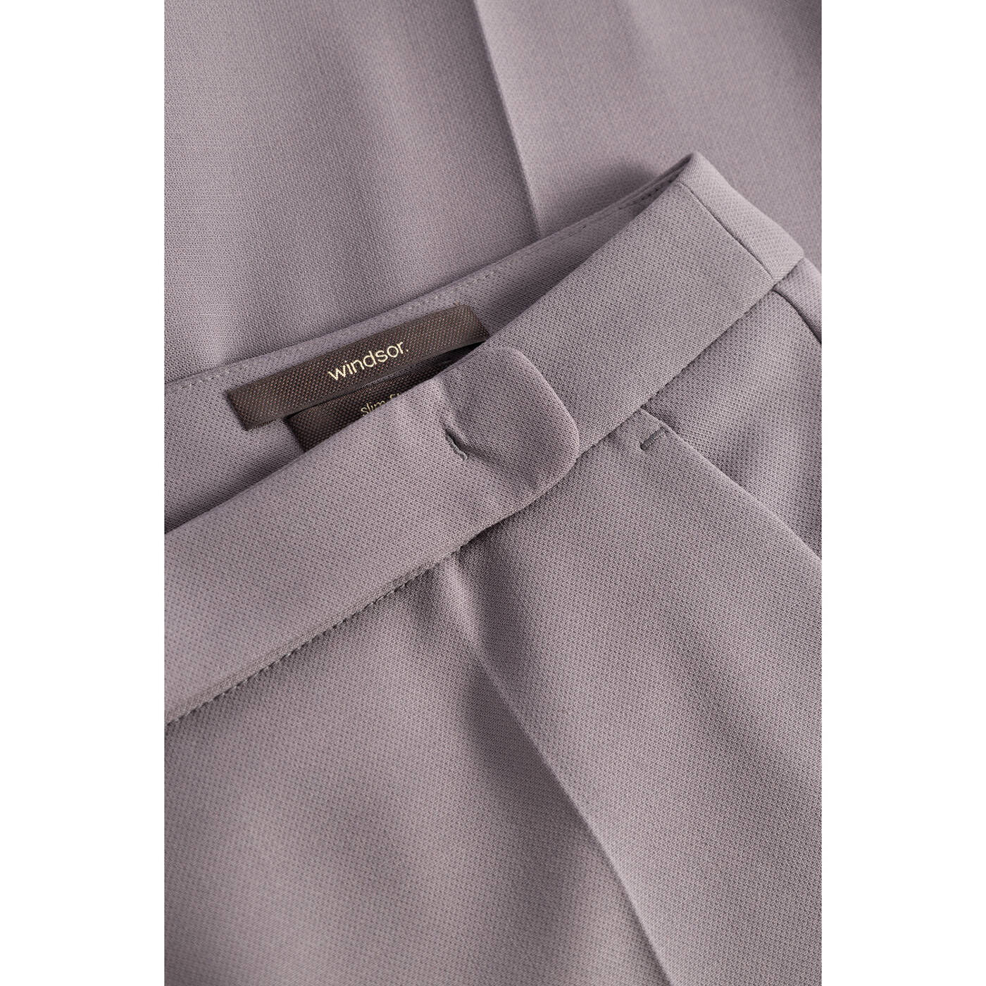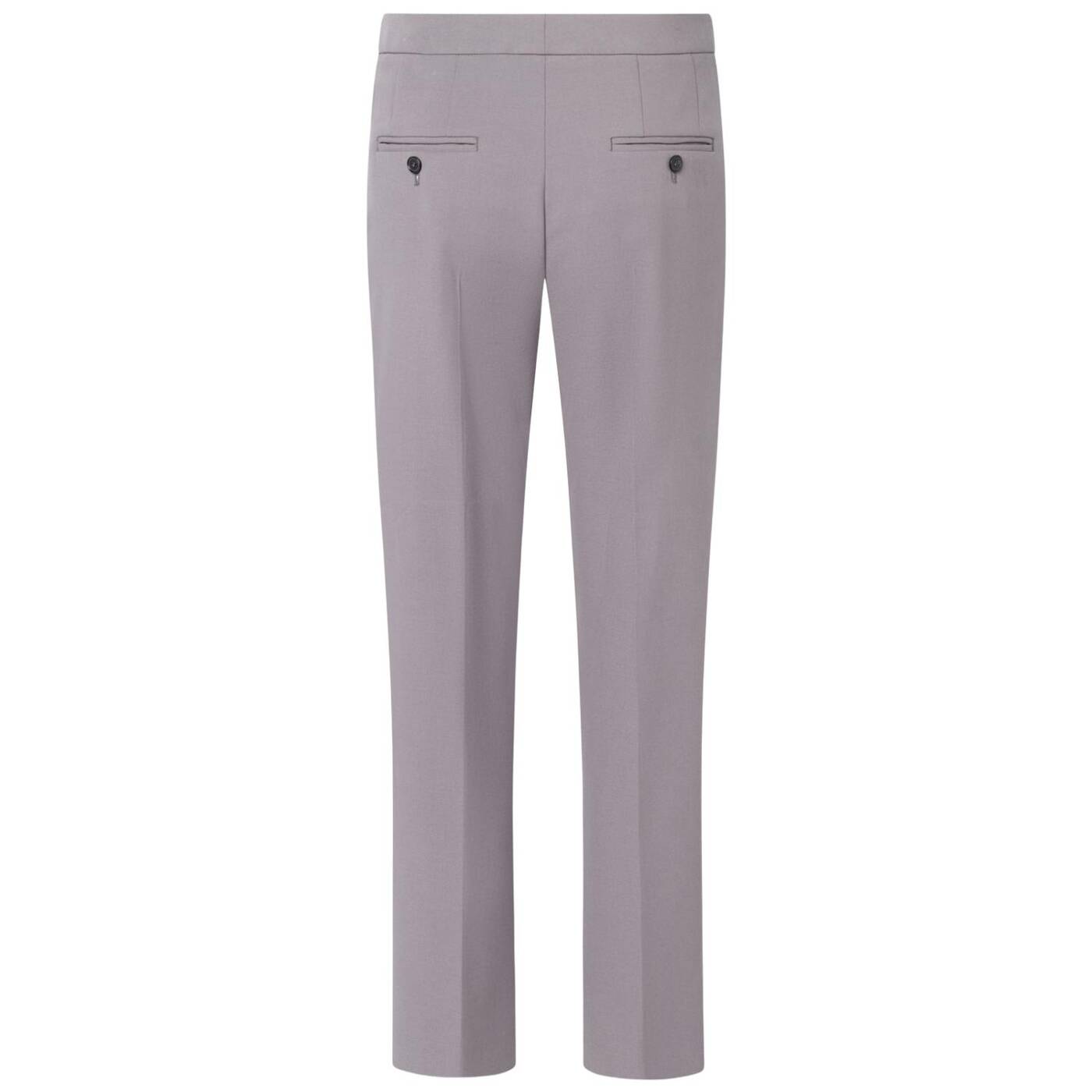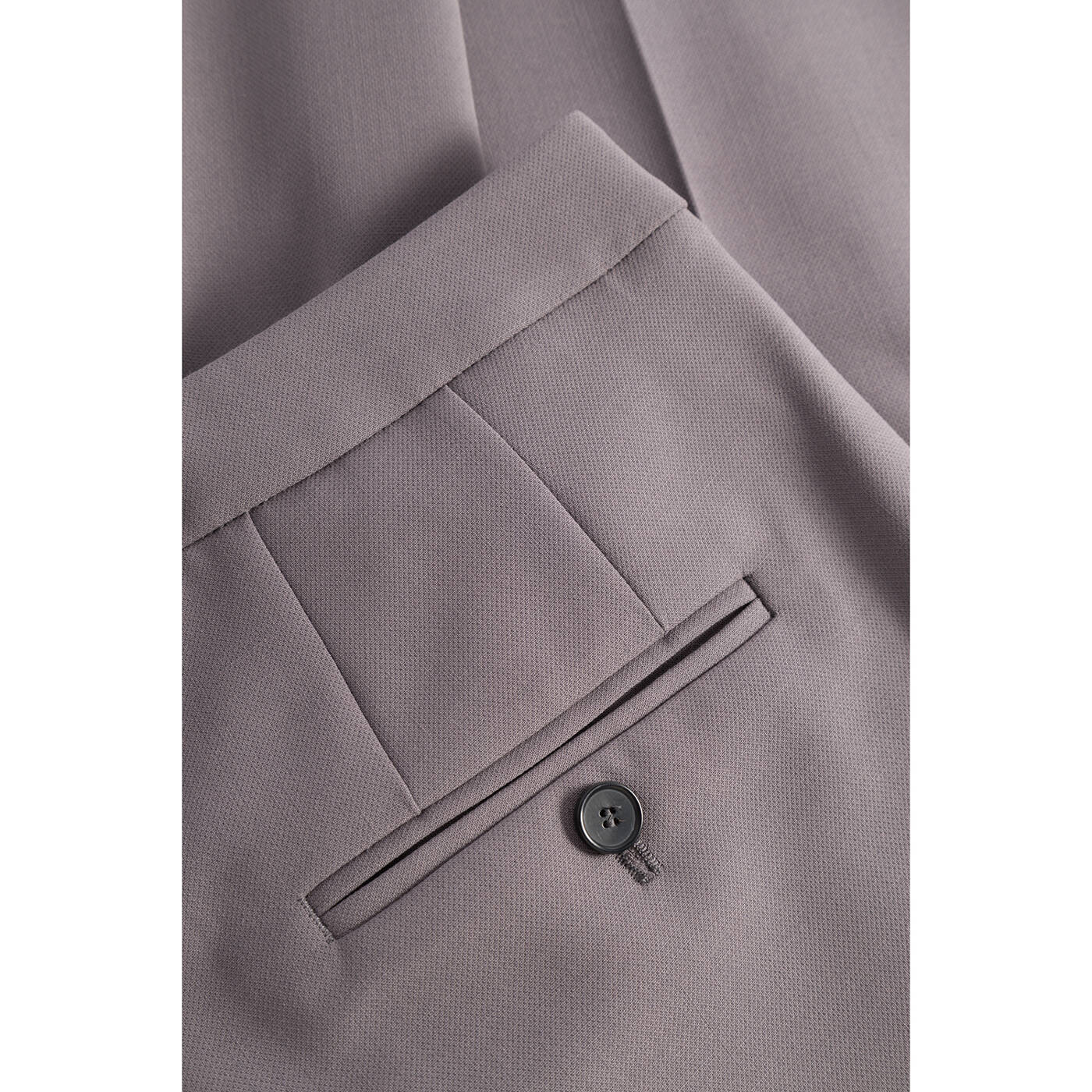 Eine Hose mit geradem Beinverlauf. Der Stoff ist fest und leicht gewellt. Sie fällt locker bis zum Boden.