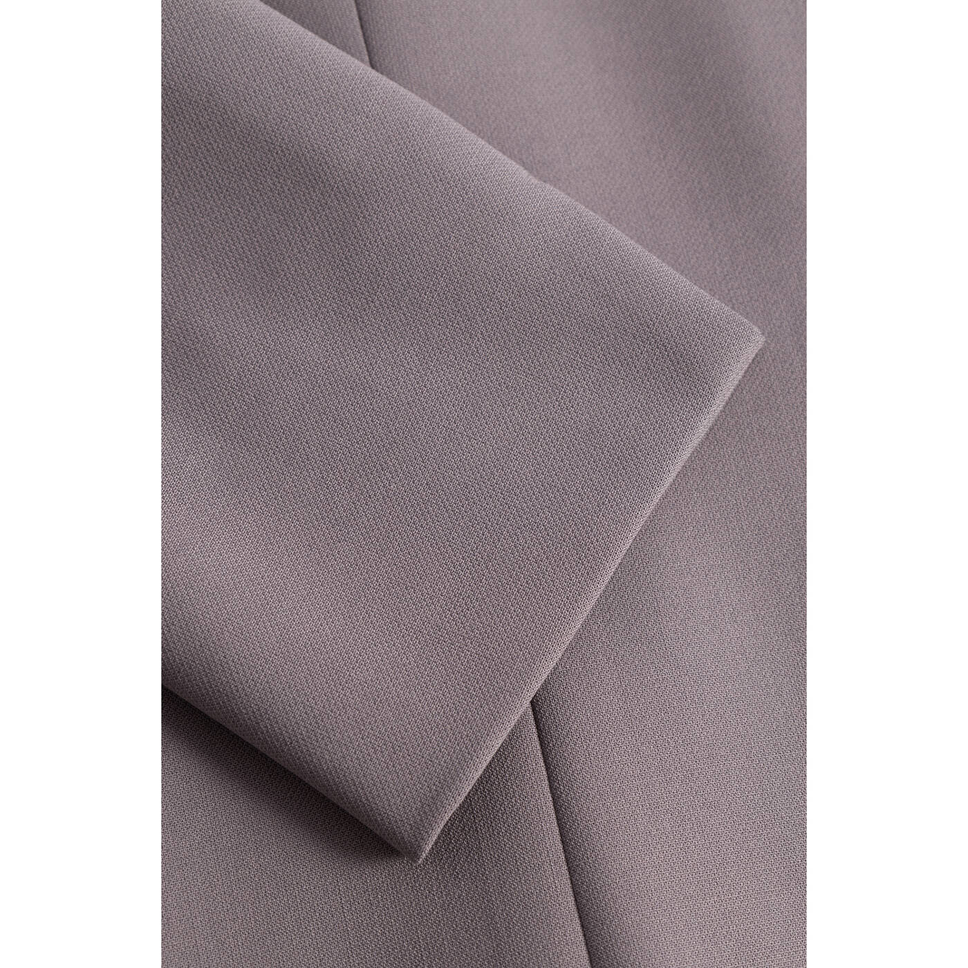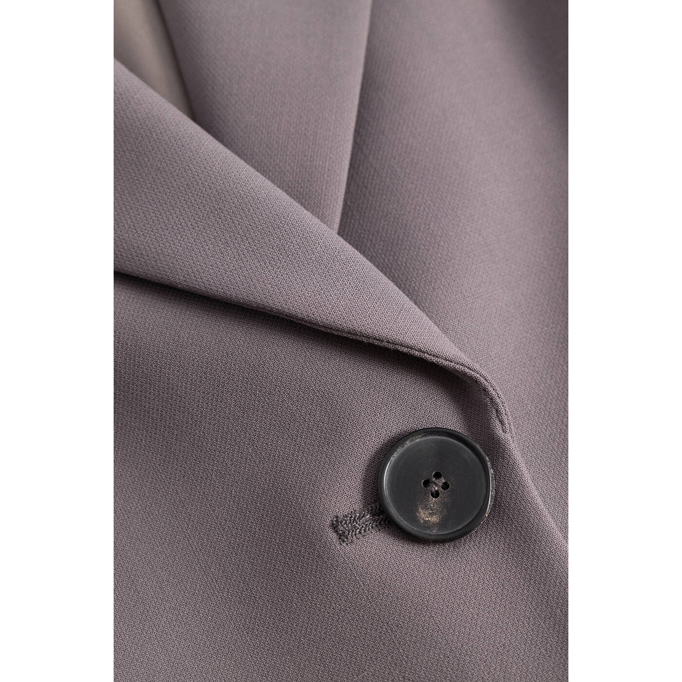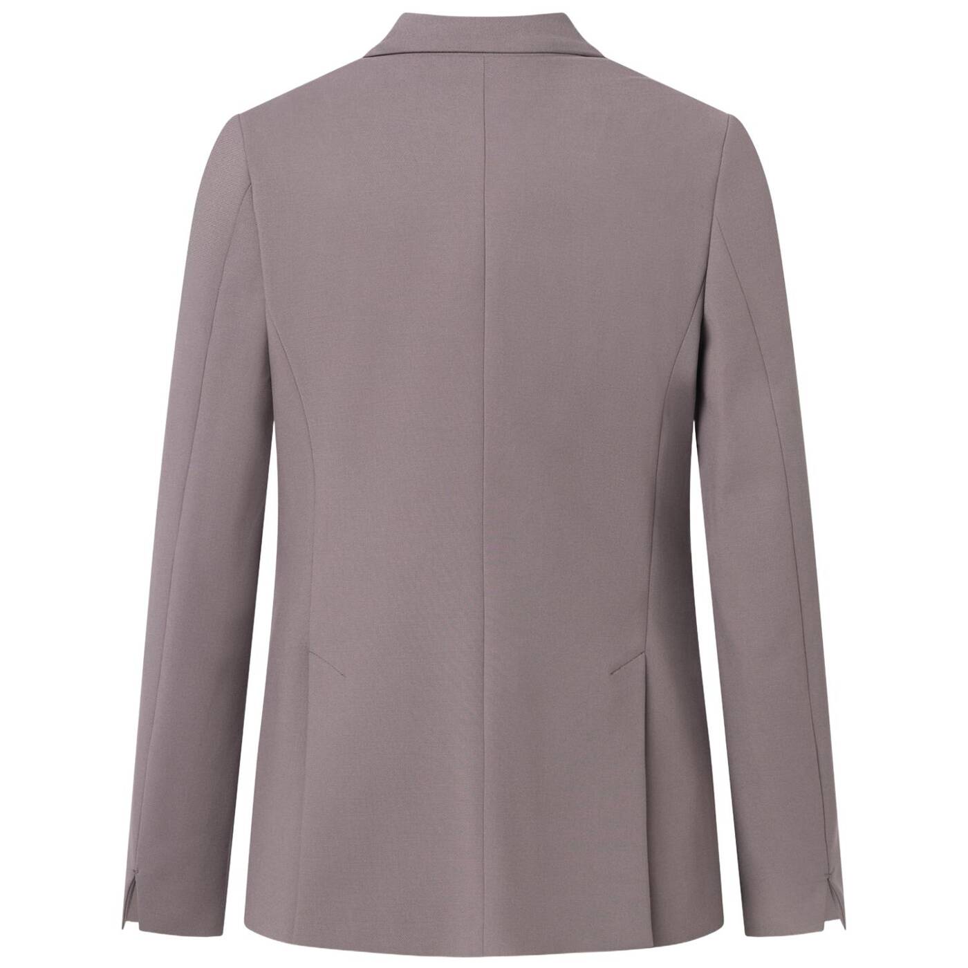 Ein formeller Blazer mit langen Ärmeln, einem Reverskragen, zwei Knöpfen in der Mitte, einer schlichten Vorderseite und zwei Brusttaschen. Der Stoff ist glatt und strukturiert.