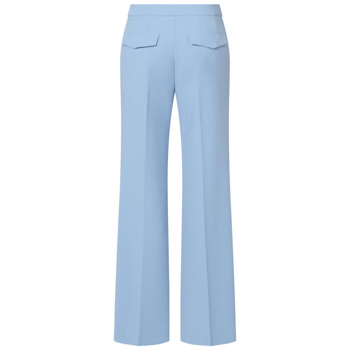 Diese elegante Hose überzeugt mit einem geraden, weit geschnittenen Bein und einer schmeichelhaften Passform. Der hohe Bund mit verdecktem Verschluss sorgt für eine stilvolle Silhouette, während dezente Bügelfalten einen edlen Touch verleihen.