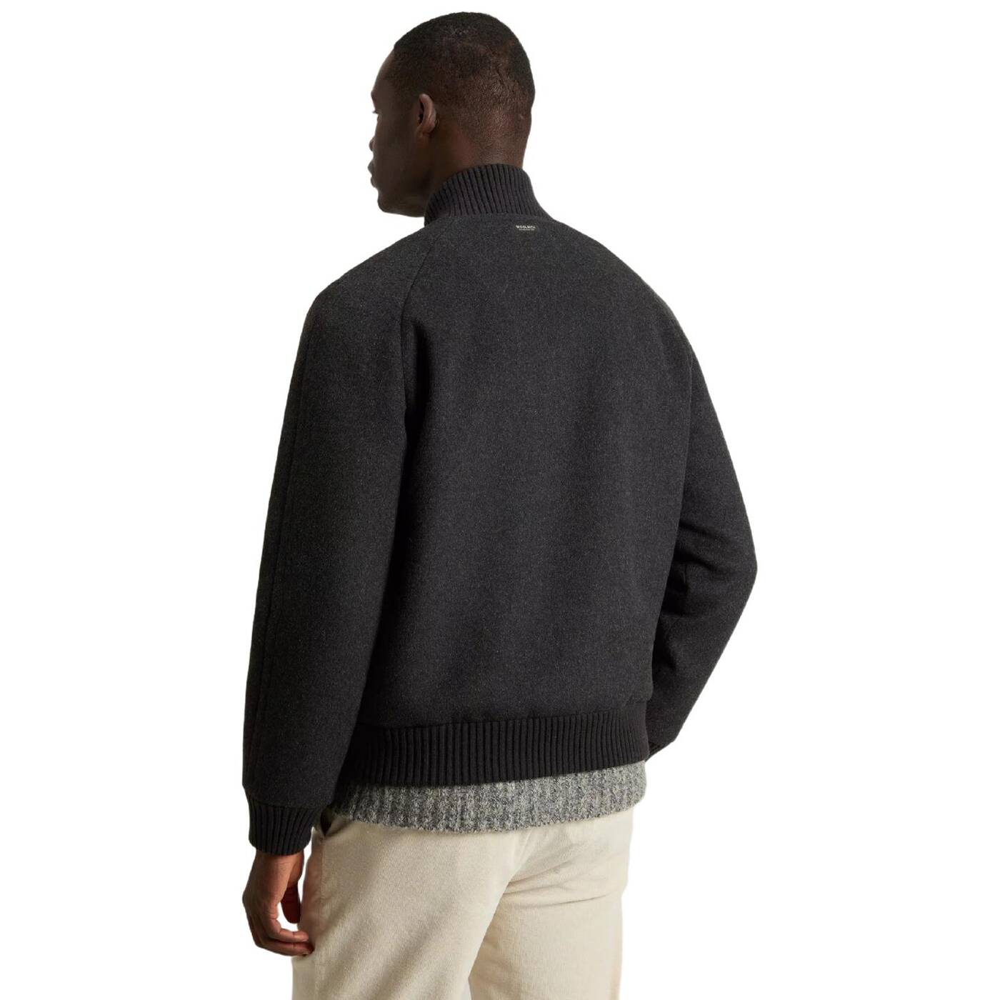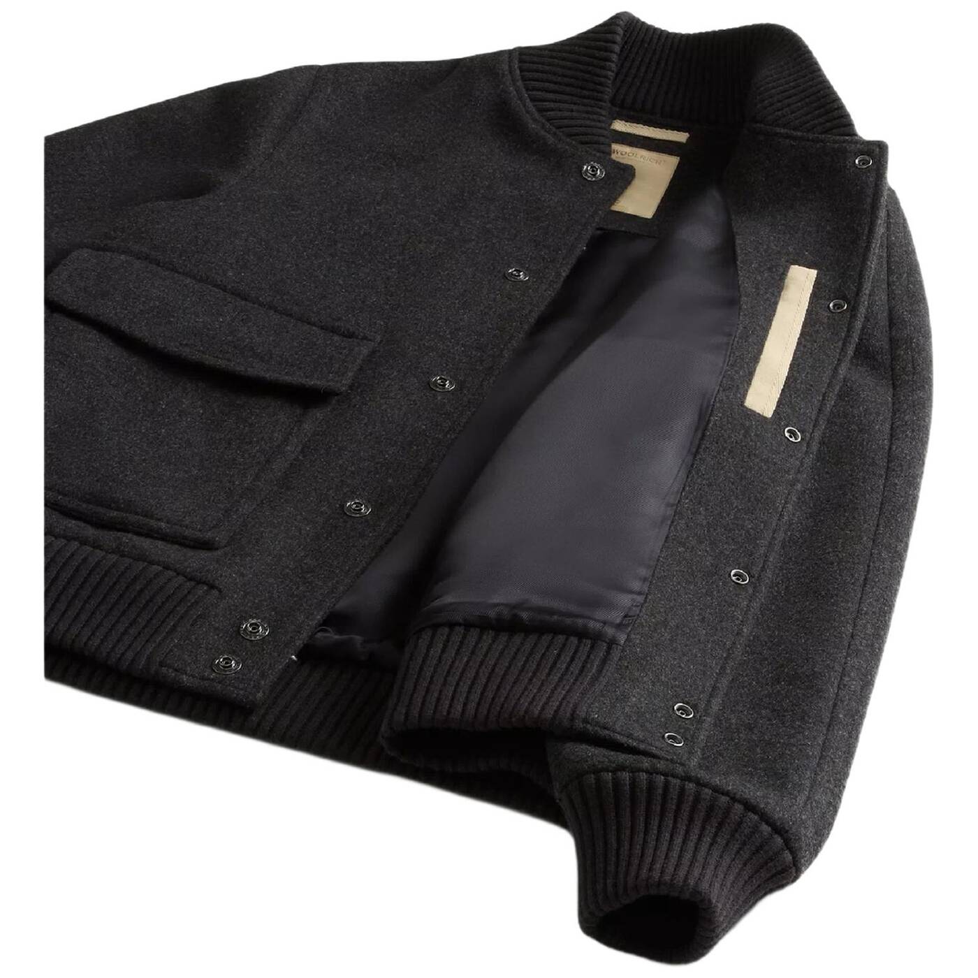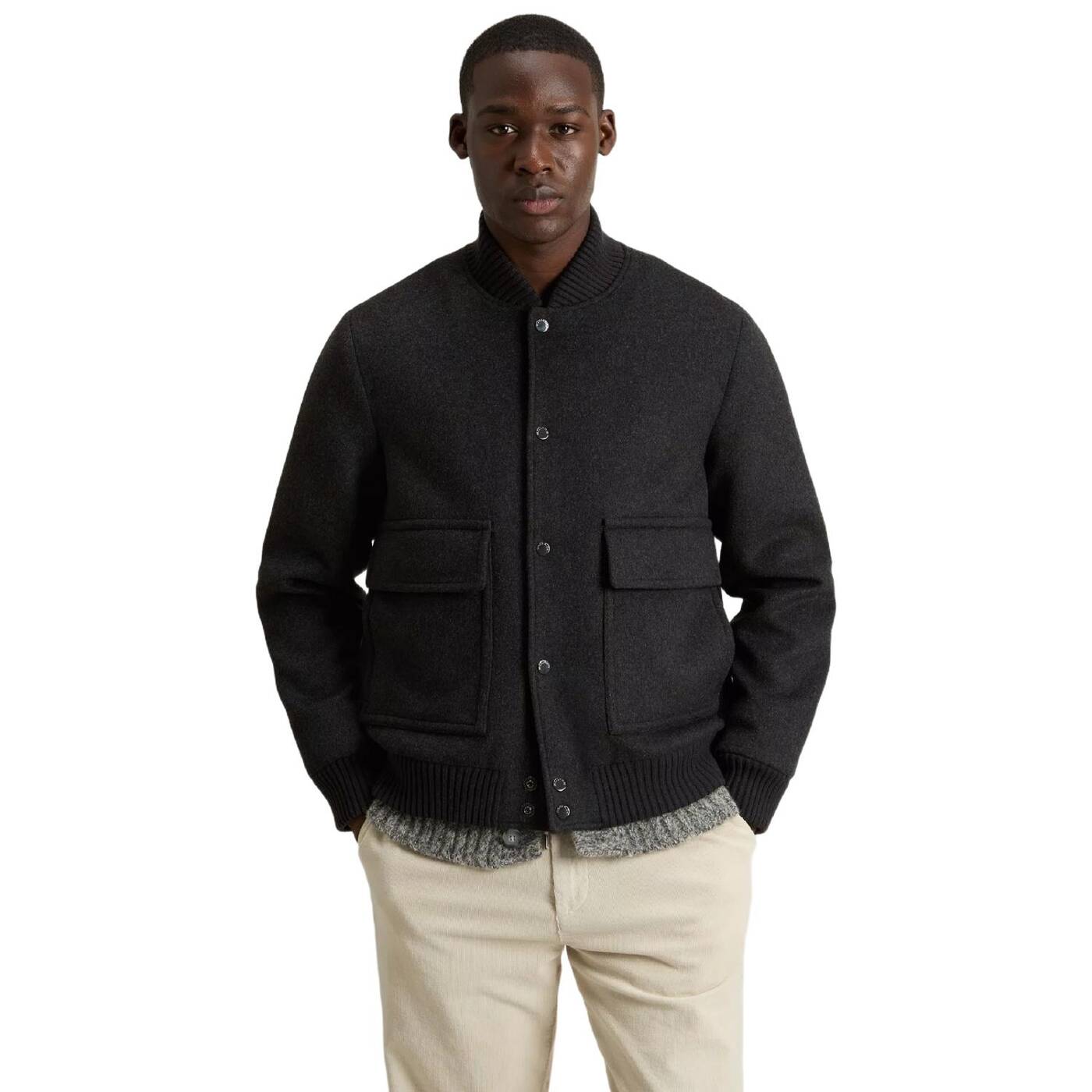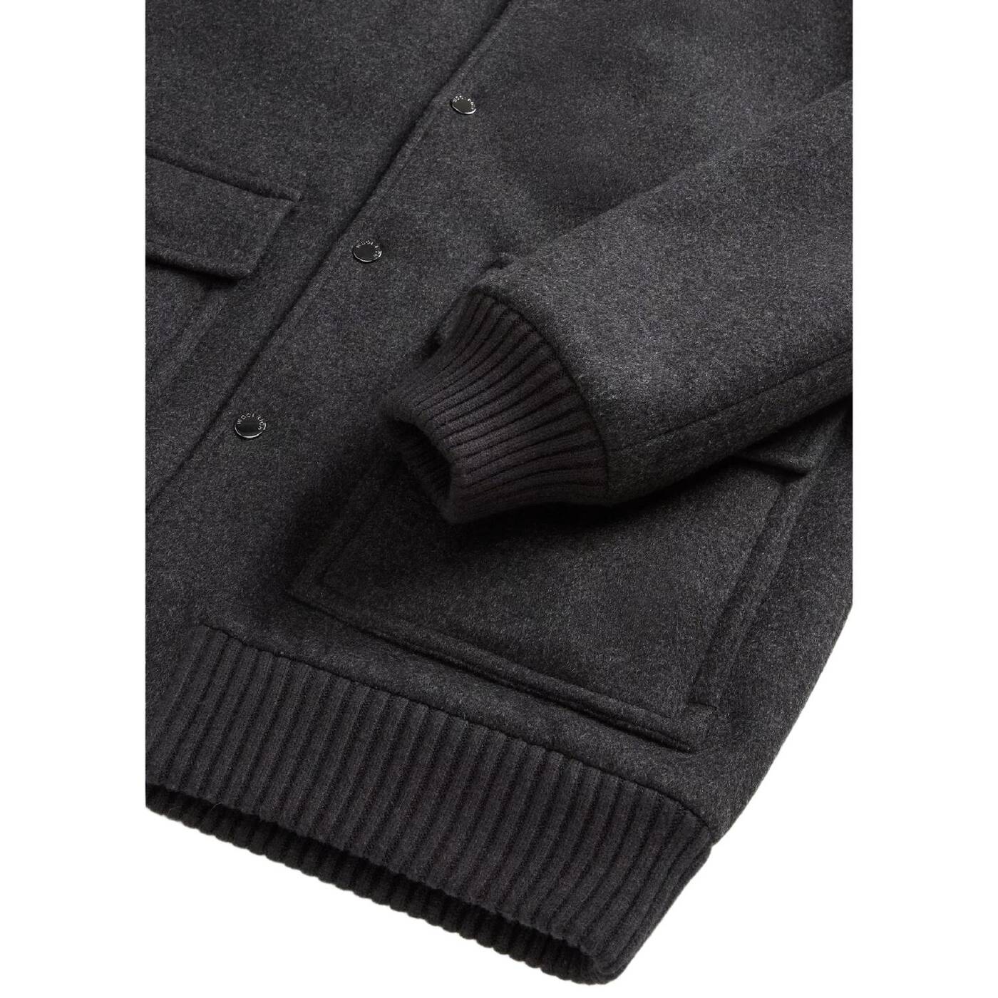 Diese Bomberjacke kombiniert Funktionalität und sorgfältige Details mit einem schlichten Design. Das Gewebe aus Wollmischung verbindet die Eleganz des Wollmaterials mit einer kompakten und strapazierfähigen Struktur. Durch sein gebürstetes Finish ist es besonders weich und angenehm im Griff. Das Modell charakterisiert sich durch einen Stehkragen, gerippte Bündchen und Saum für eine komfortable Passform, Druckknopfleiste sowie praktische Pattentaschen mit seitlicher Öffnung und verdeckten Druckknöpfen, die einen funktionalen doppelten Zugriff ermöglichen. Vervollständigt wird die Jacke durch eine Innentasche mit Reißverschluss, eine Logoplakette aus Metall auf der Rückseite und das seitliche Label.