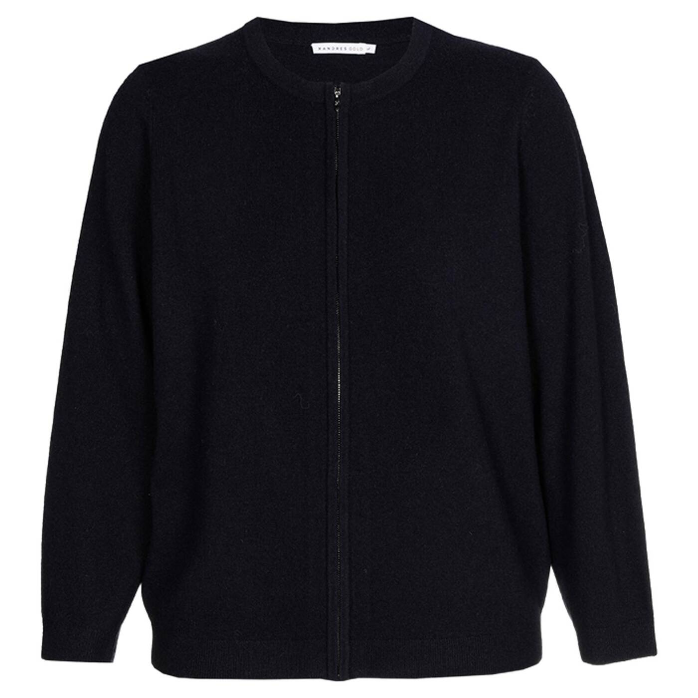 Die Jacke hat einen runden Ausschnitt, lange Ärmel und einen mittigen Reißverschluss. Der Stoff ist weich und leicht strukturiert. Die Passform ist schlicht und locker.